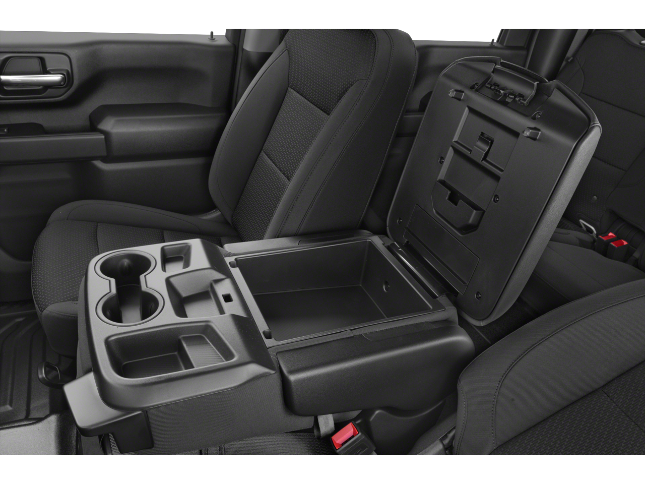 - Seat, Up-level Rear with Storage Package 60/40 folding bench, includes full-length bench seat, seatback storage on left and right side, center fold out armrest with 2 cupholders, full cab width under-seat storage, (includes child seat top tether anchor)